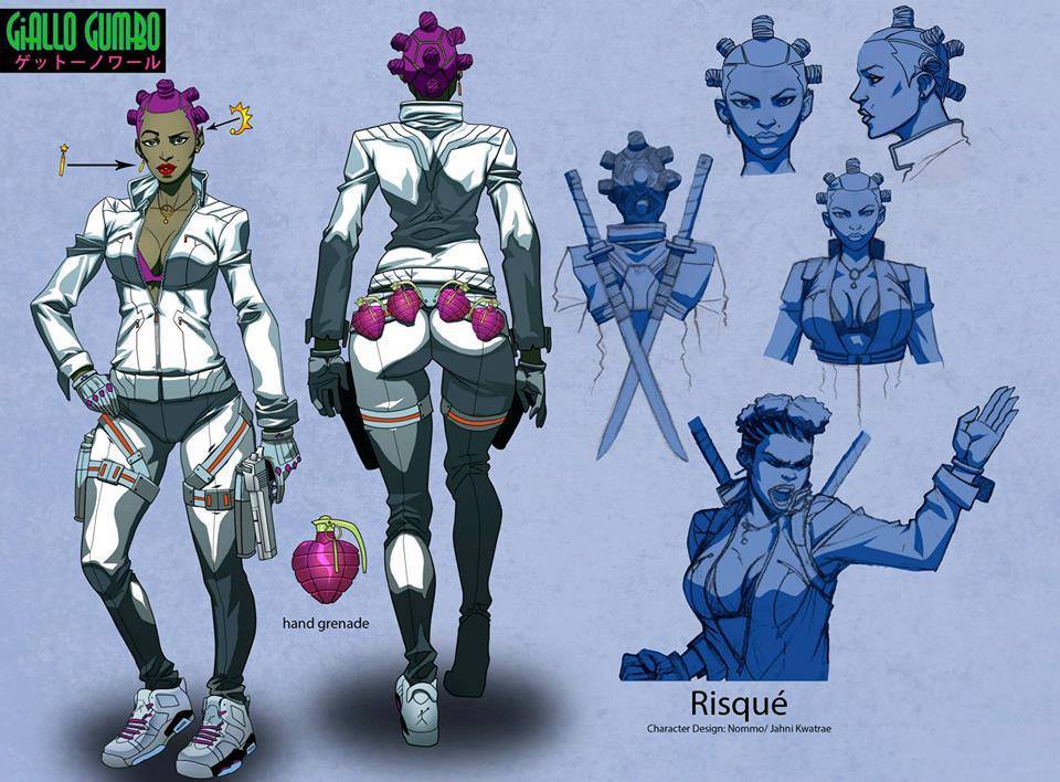 This is an awesome comic book character preview image of Risque’! She’s the lead protagonist the comic “Giallo Gumbo” an urban horror crime story. The story is written by Jahni Kwatrae and the awesome art is done by Nommo. This is dope! Find out more about Giallo Gumbo and all it’s cool characters on Giallo Gumbo’s Facebook Page