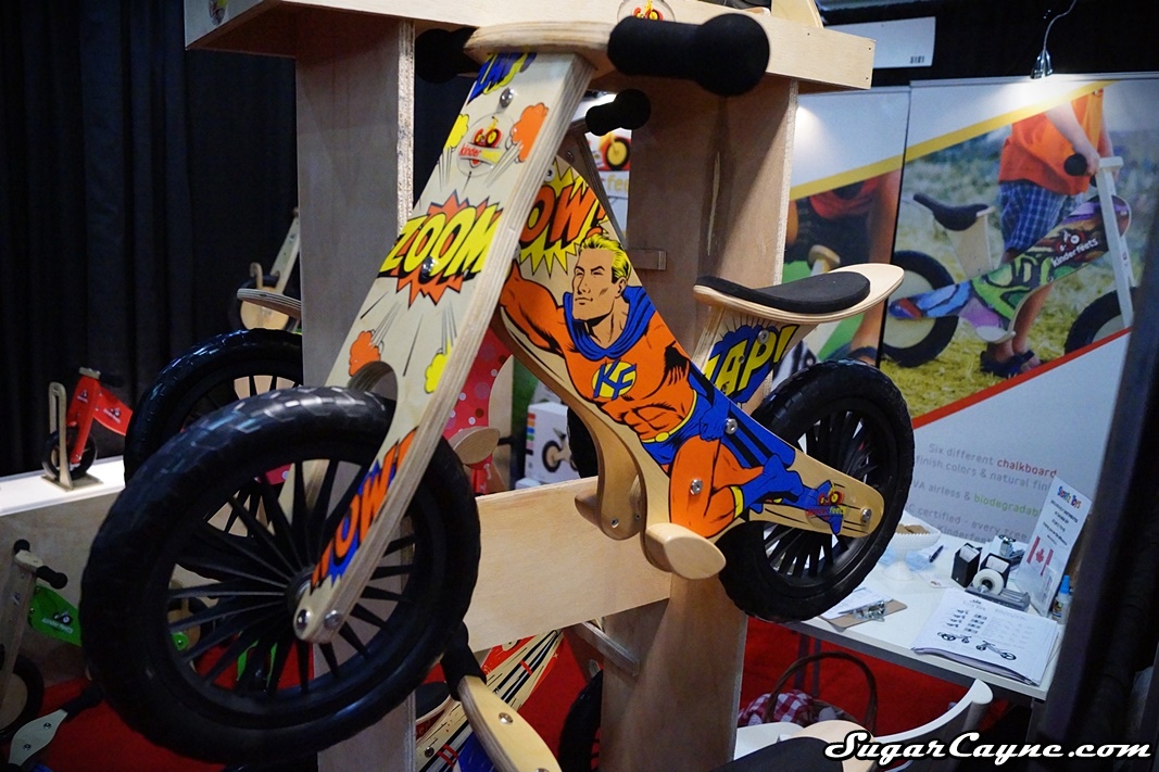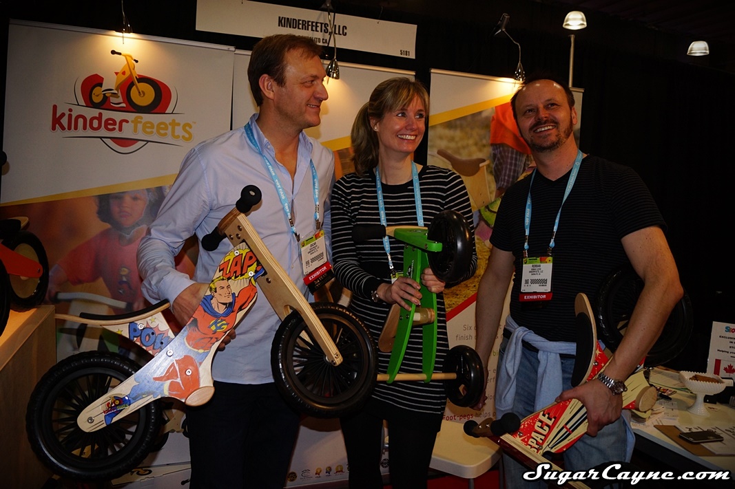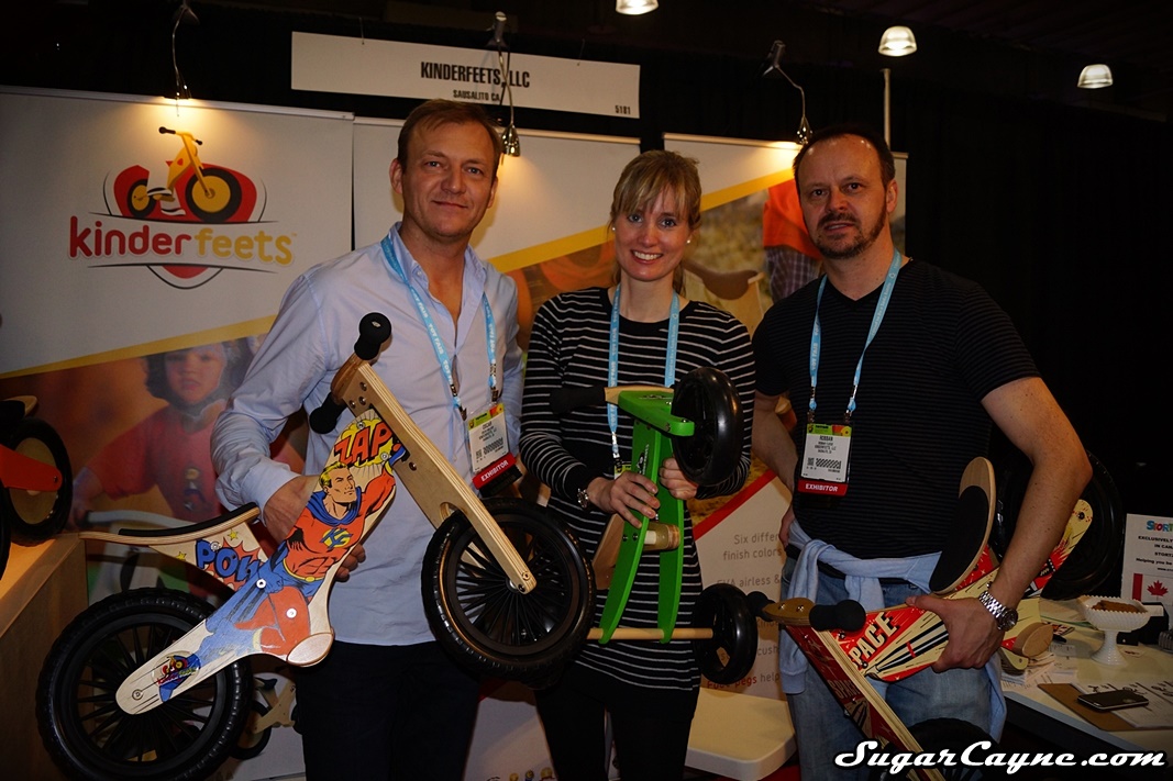 It was good to see the Kinderfeets crew back at Toy Fair New York! I really like their wooden/chalkboard balance bike that I check out at last years event, so you know I had to see what they have for this season. I had the pleasure to have Kinderfeets Co-Owner Carlijn Beekman-Joosten give me a tour of the new products they had on display at their booth. We got to see the classic chalkboard finish bikes again then we checked out the new retro inspired designed wooden balance bikes. These bikes feature new, lighter plastic spoke wheels. They have a retro cup cake pink model for the girls, a rocket themed one, stars N stripes and a cool superhero themed bike. Check out the interview!