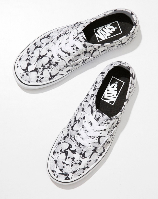 If you look at these new collaboration kicks by Vans and FACETASM from a far you’d think they were just white kicks with a wild black pattern on it. But if you look closer you’ll see that the pattern is actually a bunch of butterfly’s.. nice! Designer Hiromichi Ochiai applied a monochromatic butterfly-inspired pattern to Vans iconic Authentic and Slip-On silhouettes. Both silhouettes retain the canvas uppers and vulcanized midsoles their known for. We’re diggin them!