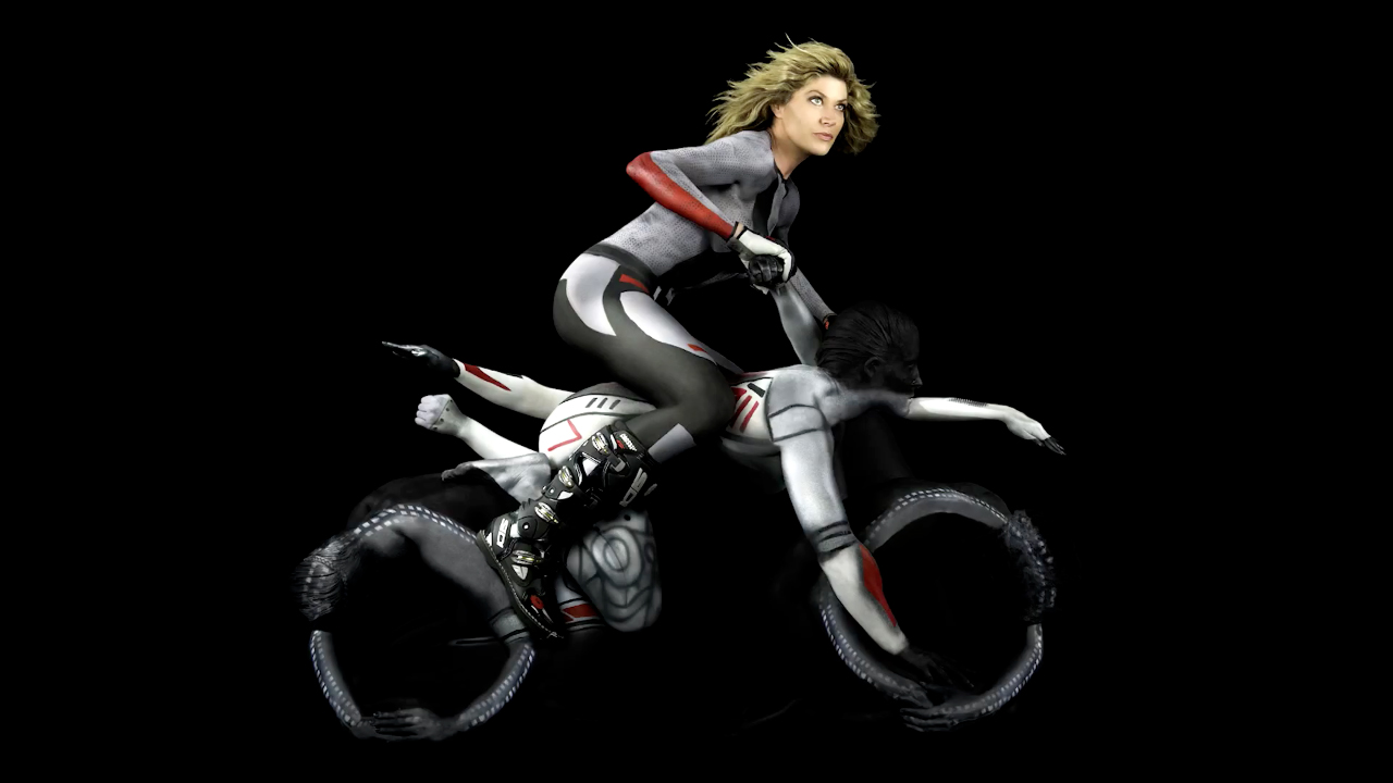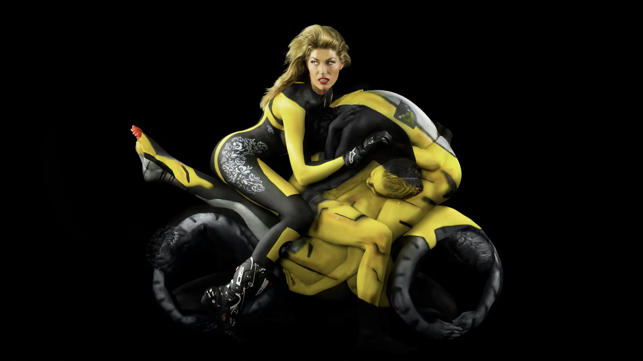 1 Concept, 3 Human Motorcycles. This “making of ” video was shot over the course of 3 days and captures the process of bringing human motorcycles to life for the Progressive International Motorcycle Shows ad campaign. Trina Merry, a professional body paint artist, and her team worked around the clock transforming their human canvases into a sport bike, dirt bike, and cruiser.