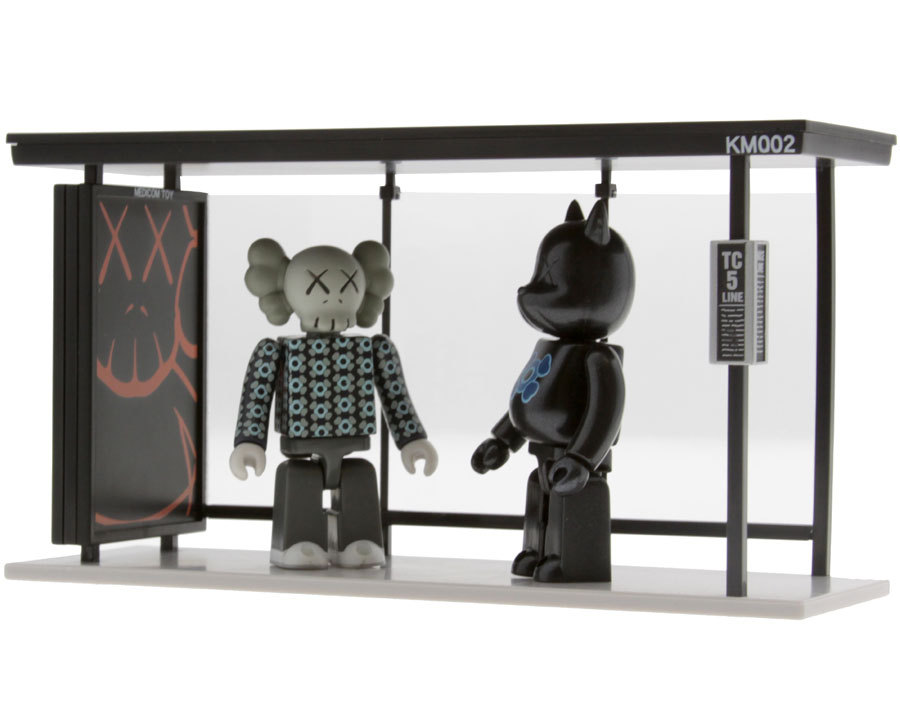 I just saw this cool Vinyl Toy set of a NYC bus stop scene designed by NY Graffiti artist KAWS. The bus stop scene is a tribute to KAWS’s infamous nocturnal raids on NYC billboards and bus-stop ads, now this is HipHop! KAWS was made famous for his skull-head interpretations of icons such as Mickey Mouse. This set comes with two bearbricks and a 6.5 inch Plastic Bus Stop, KAWS 100% Kubrick Figures.