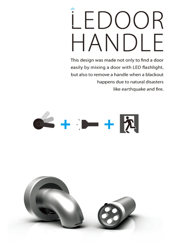 The LEDoorHandle is a 2011 Spark Awards Winner and it was designed by Kun-hee Kim, Kei Shimizu & Nguyen-vu Dang