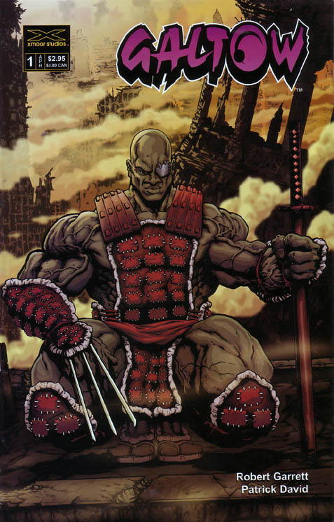 “Set in the year 2015, GALTOW centers upon four characters: The silent master JIYA, The massive warrior KEYLON JAKES, the flamboyant Ninja WU REYMOS, and the psychotic LADY CAFA as they fight to survive a post-apocalyptic New York. The main story takes place almost twenty-five years since the conclusion of The Second Vietnam War … Fighters from all walks of life wage violent battles in the streets hoping to gain the attention and respect of the elite fighters. Duels known as the “GALTOWS” are fought in the great arena’s across the continent seeking the highest echelon of the martial masters … For to rule the Galtows is to be a living god on earth.”