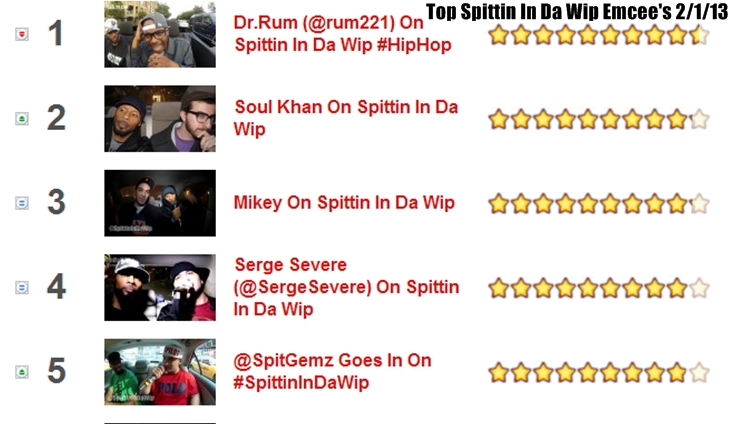 Top #SpittinInDaWip Emcees, Week Ending Feb 1st 2013