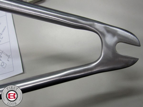 This is a new seat and chain stay junction that we have been developing for a while and wanted to give everyone a look. What we want to do is alleviate all the welds on the drop out similar to the Paradigm fork that are currently being tested. This gives you a clean, sleek look with a drop out that can take some abuse and still not be too heavy.”