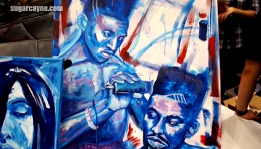 Professional Barber and Illustrator Chuck Styles was showing his really nice illustrations at the Major League Barbers booth at the International Beauty Show at the Jacob Javits Center. The pieces he had on display were really nice especially that illustration of the that classic Big Daddy Kane photo with Scoob Lover AKA Johnny Famous giving him a hair cut. Check out the clip!