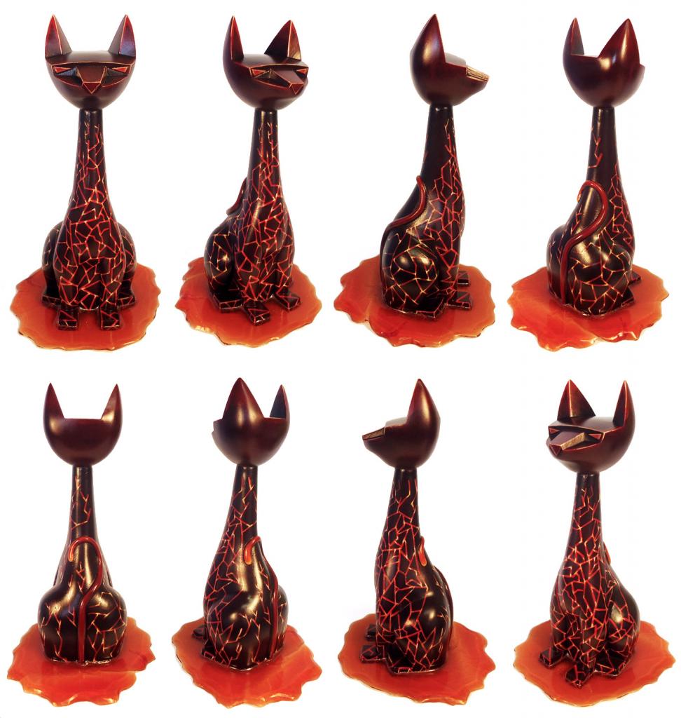 Eric Diaz has been on his grind with his Tuttz resin pieces this year and I just found out about 3 new dope Tuttz customs that are about to be release May 14th! Eric will be releasing some 8″ Tuttz customs and Tuttz Mini customs in his online store by artist Adam Pratt, who has also signed on to be part of Argonaut Resins new creative team!!! First is the one that’s shown above, it’s called “Sekhmet Rising” which is an 8″ Tuttz with a cracked design that sits in a bed of clear tint orange lava colored resin. Next is a 8″ Tuttz called “Armored Golem MK.1 Battlefield Cat” which features worn metal paint work that gives it that battle damaged look and feel, pretty dope!