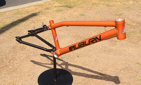 I saw this article on BMXNEWS.COM and had to spread the word that the classic Auburn bikes are back with a brand new updated frame!! The all new frame features the classic two-piece design, as the original but with all the new geometry and modern day technology  such as an integrated headset and 6061 Aluminum. The frames are hand made in American and are made anodized with laser-etched graphics, and colors are per the customer’s individual wishes which is dope! It’s said that eventually there will be accessory front and back ends available, find out more HERE Hopefully I’ll get to see this bike up close at the next big national I go to this summer.