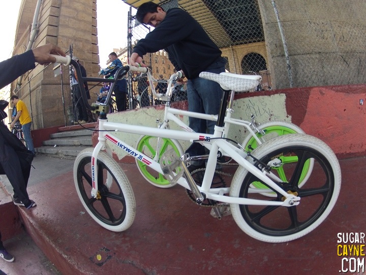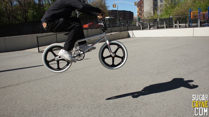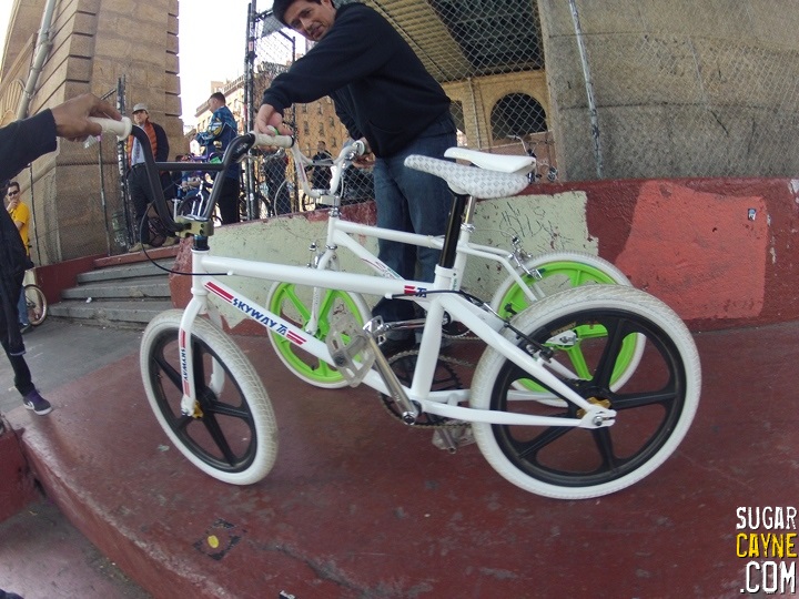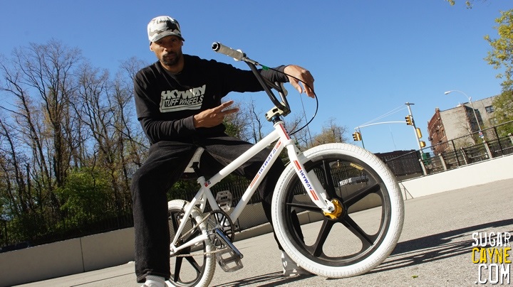 When I went on the recent Old School NYC Bike Ride I rode my brand new 2013 Skyway T/A. People were loving the bike and were surprised that Skyway was still making bikes and Tuff Wheels. When we made a stop at the skatepark under the Manhattan Bridge a guy named Nelson Rohas came up to me and was telling me how much he loved my bike then he got really excited when I told him that my T/A was totally updated bike with today’s specs. So I put the camera on and got a quick reaction from him and he wound up doing a lil bike check too. I also put some clips of me riding the bike on the east side. I also added some pics below so you can get a good look at the bike. Stay tuned for more videos and photo shoots of me and the 2013 T/A!