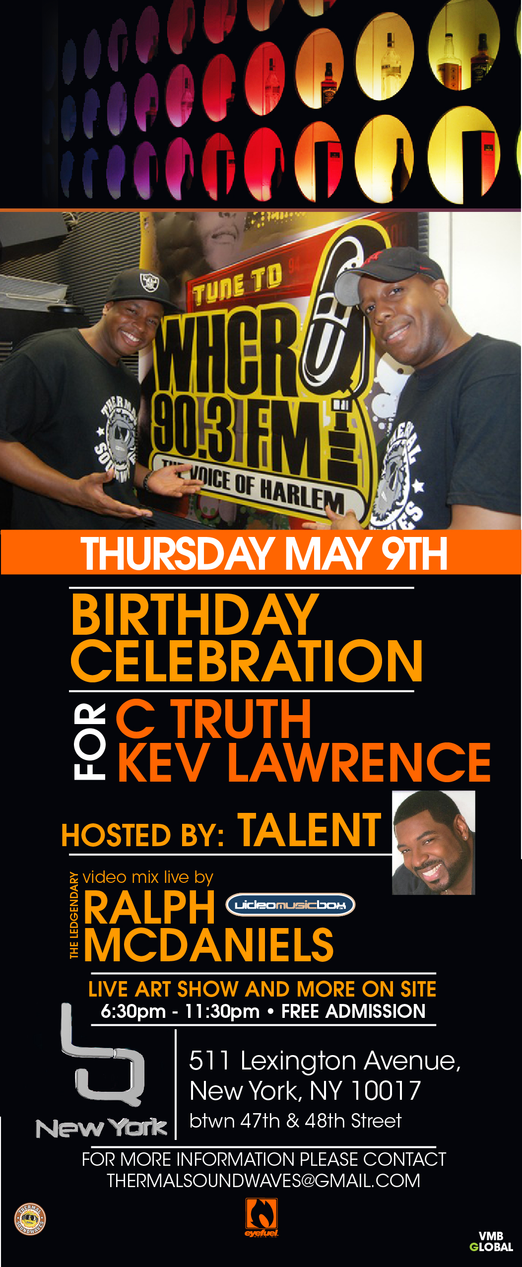 It’s that time of year again for the annual Radio Boys Radio Boys (C.Truth and Kev Lawrence) birthday party, this year it’s hosted by super funny comedian, Talent! It all goes down May 9th at LQ’s, Video Music Box and CAC-TV will be in the building video taping and taking pictures come through! More details below!