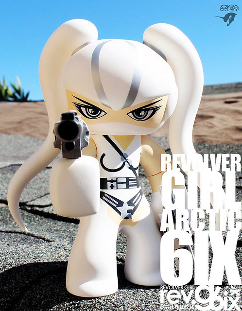 Yo this new revolver girl ARCTIC 6ix edition vinyl toy by Rotobox x KusoVinyl  is so sick! I’m really feeling the  design with the white outfit and white hair, she looks like ninja with guns. This colorway with cool Shinobi face will be an exclusive for the  San Diego ComicCon so if your trying to get your hands on one, you’ll need be there. Hopefully the folks from Rotobox come to the New York Comic Con with this piece or another colorway of this awesome figure! Ahh if I only had the money and the space, I would grab this one quick!
