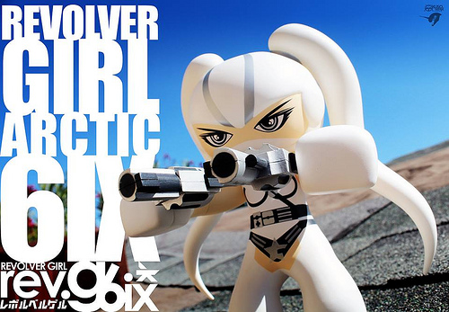 Yo this new revolver girl ARCTIC 6ix edition vinyl toy by Rotobox x KusoVinyl is so sick! I’m really feeling the design with the white outfit and white hair, she looks like ninja with guns. This colorway with cool Shinobi face will be an exclusive for the San Diego ComicCon so if your trying to get your hands on one, you’ll need be there. Hopefully the folks from Rotobox come to the New York Comic Con with this piece or another colorway of this awesome figure! Ahh if I only had the money and the space, I would grab this one quick!