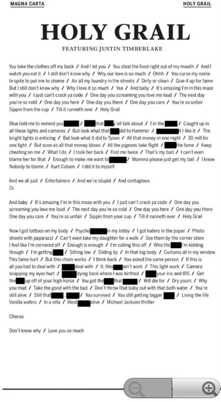 Jigga man just released the lyrics to one of his new Magna Carter album tracks, “Holy Grail” that features Justin Timberlake! The lyrics were released this morning through the MCHG app that hit Google Play today! The song is expected to drop tomorrow and the album will be available to first 1 million Samsung Galaxy users who use the app on July 4th. Now lets talk about the idea of releasing the lyrics to song before the actual song comes out lol! When you got it like Jay and Jus you can do things like that and fans will love it. But what they should’ve done was have fans make their own versions of the song since they already have the lyrics and see what they come up with, that would’ve been classic lol!