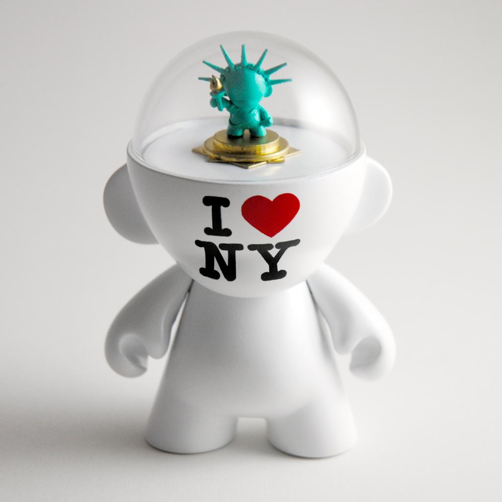 As I assemble my “If I had the money and space to collect custom toys” collection I came across this dope piece called “Munny Loves New York” by designer ClarkR. “Munny Loves New York” is a white 4-inch Munny with the iconic “I♥NY” slogan cleanly on the face the really fly part is the clear dome that has a zipper-pull Munny remade to resemble the Statue of Liberty, it’s simple, creative and dope!! This was one of the piece that was made for the Kidrobot “MunnyMunth Contest”, I wonder what place it came in? Hopefully ClarkR will make a few of these for your ya’ll to get your hands on.