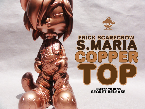 My dude Erick Scarecrow is on a serious grind with all his custom designer toy releases, this S.Maria “Copper Top” Resin is his latest! This custom hand painted metallic copper piece dropped last night on the ESCTOY online store. There’s only 6 pieces available worldwide and are priced at $300. If your a collector who’s got the funds you need to get your hands on one 4sho!
