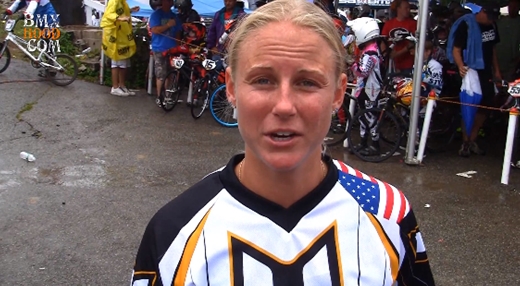 I caught up with BMX Elite Women Pro Amanda Geving during the mud race that went down on Day2 of the Stars N Stripes Nationals in Southpark PA. She talked about how she got disqualified for hitting the pro set during her race on Day#1 (Saturday). There was a UCI rule said elite women could not hit the pro set but that message wasn’t delivered clearly to the riders. Amanda was hitting the pro set real nice during practice and had everybody amp’d, it’s always dope to see the ladies boosting a huge set of doubles, It’s real wack that she got DQ’d. I mean if the amateur riders could choose to hit the pro set or not why can’t the elite women? Come on sun!