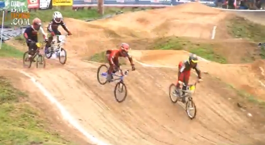In this clip of the USABMX 2013 Stars N Stripes Nationals at Southpark PA I have round two of Sunday’s open motos. The rain came down pretty good during these motos and the track was really wet and slippery and the riders were still going for it. Surprisingly there were no spills and someone actually hit the pro set.