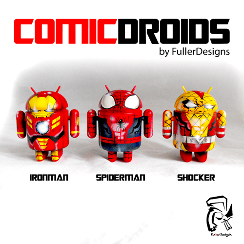 For all my Android owning, toy collecting, comic book heads out there, Fuller Designs created these really dope Andriod toy customs called Comic Droids! They just released three new pieces featuring Ironman, Spiderman, and Shocker! Each custom was created with acrylic and airbrush paint and they look dope. You can get them from the FullerDesigns shop for $125 each but their sold out already lol, maybe you can holla at them and see if their making any more.