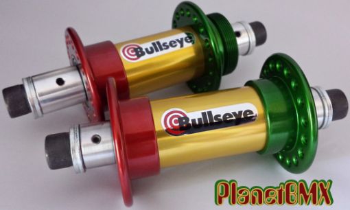 My boys over at PlanetBMX.com just got these dope, new, retro Bullseye hubs with a cool rasta colorway! If you raced BMX in the 80’s you might remember these super smooth, fast and legendary Hubs, well now their back! I allways wanted a set of these puppies  they were the hubs to have back in the day and of course you know I’m feeling the Rasta colorway 4sho! They only come with a hollow 3/8 axle find out more about these great hubs here
