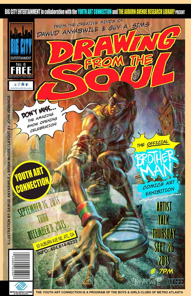 Emmy Award Winning artist/illustrator Dawud Anyabwile and Guy A Sims are bringing the popular “Drawing From The Soul” art exhibit back to the Auburn Avenue Research Library in Atlanta GA from September 16 through December 8th. The Drawing From The Soul art exhibit will feature illustrations and art from the pioneering comic book Brotherman: Dictator of Discipline, a series that introduced one of the most authentic and enduring Black heroes ever created plus a lot more. It’s gonna be an amazing event!
