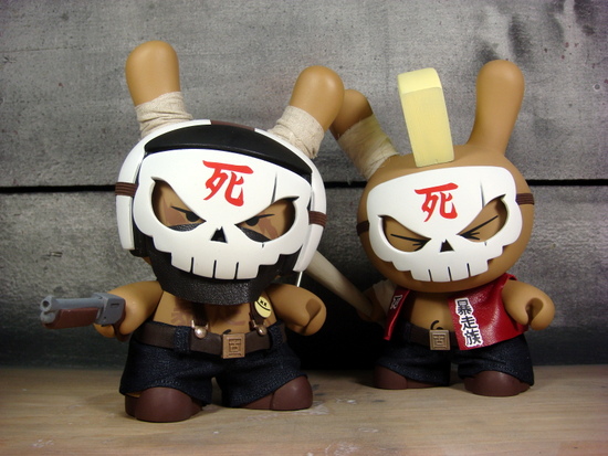 Custom toy designer Huck Gee created two really dope post-apocalyptic characters called Skullheads. Boso and Baseball are their names and they all about