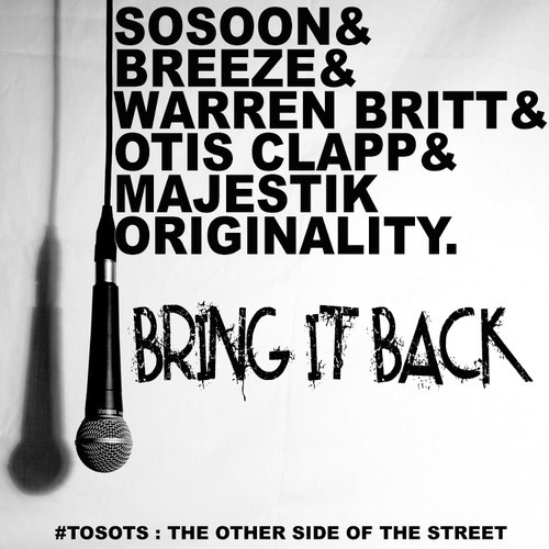 Bring It Back is from the upcoming album TOSOTS: The Other Side of The Street. A collaborative project from SoSoon & Majestik Originality. This release features Warren Britt & Otis Clapp. Both MCs know a thing or two about putting a collaborative album out, as they previously released music under the moniker “The UNDERDOGZ”. On the hook is Breeze a singer that came about being on this single by SoSoon. Breeze definitely adds the element needed to give the vibe a much needed vocal ambiance.