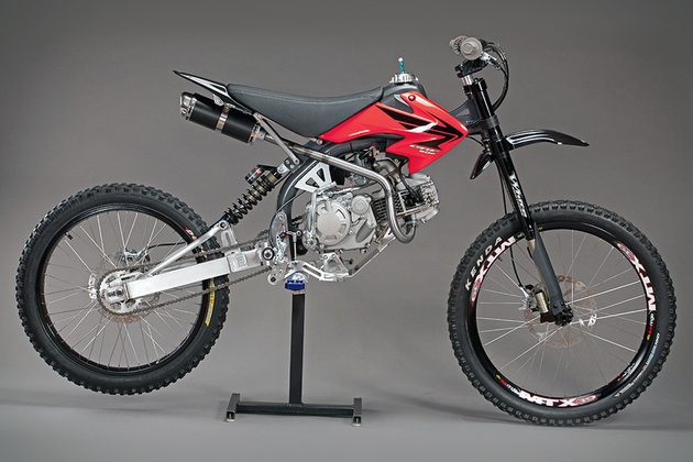 So a guy named Cam Woods created this really really dope DIY motorized bike kit that you can assemble yourself using a XR50/pitbike engine and standard mountain bike components and it’s called Motoped. Motoped is one of the dopest motorized bicycles around and it’s very durable form the video that I’ve seen: