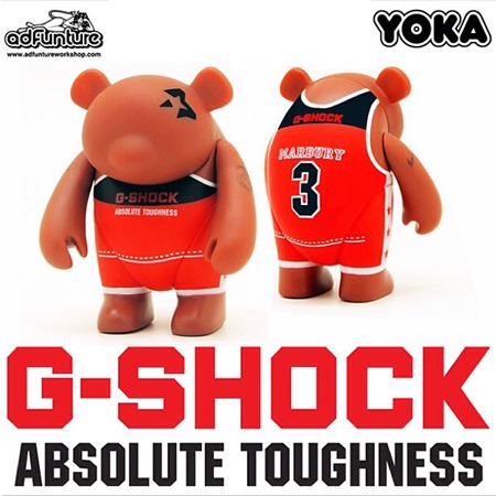 Adfunture’s Yoka figure got a new look with this brand new collabo release with G-SHOCK. Yoka is rocking a Stephon Marbury #3 B-Ball outfit represent for G-Shock Absolute Toughness. It should be coming out some time in October, pretty dope!