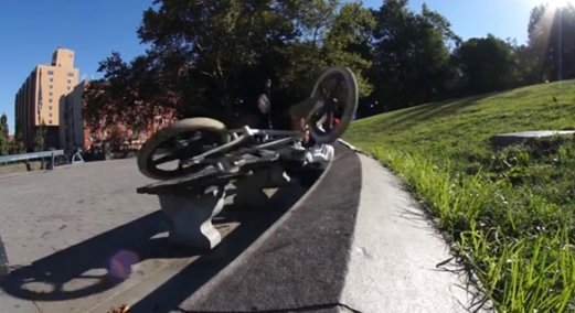 I was filming a new Skyway BMX edit up in Harlem with Dj Thoro and wanted to film myself jumping on this bench then over a little gap to the grass. Now I already did it a few times and as soon as I put the camera on..BAM!!! I BUSTED MY ASS!! LOL!! Check out the clip and enjoy my slip up! Stay tuned for the new edit…the one where I don’t fall lol!!!