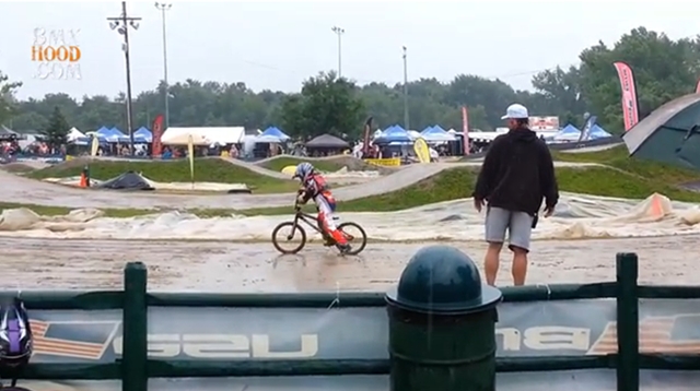 I got this clip while I was filming at the Empire State Nationals in Kingston Point BMX earlier this year. The track was so muddy and slippery on Day 2 of the Nationals riders were having a hard time staying on their bikes. The kid in this video actually had to go backwards on the track to get enough speed to get over the doubles in the first turn.