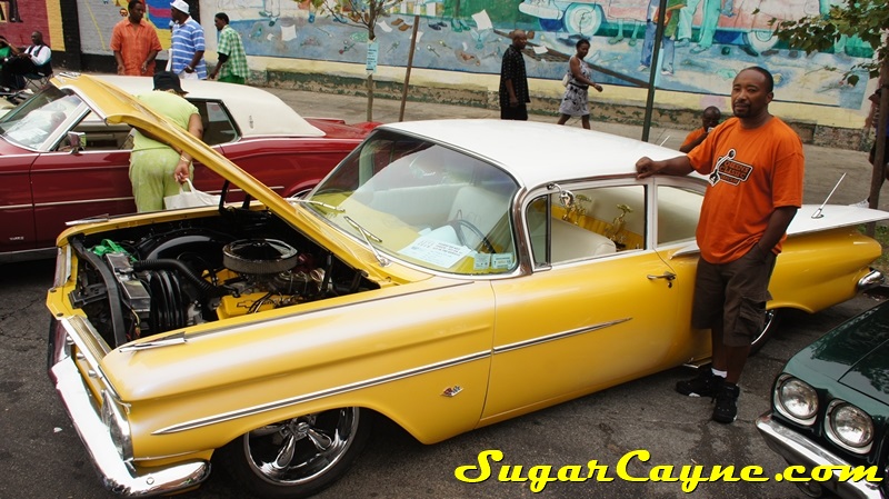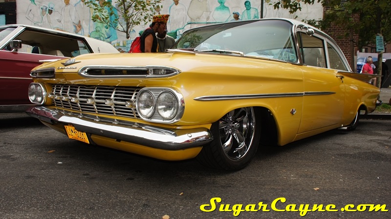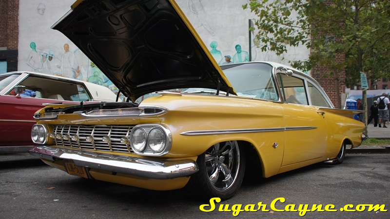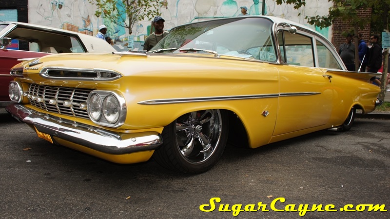 James Pringle of Queens Classic Car Club brought his amazing, award winning 1959 Chevy Biscayne to the car show during the Harlem Day street fair. This classic yellow and white wip was definitely a show stopper so you know I had to get James to talk about his car for SugarCayne.com! Now this is the type of car I’d like to shoot Spittin In Da Wip in 4sho!