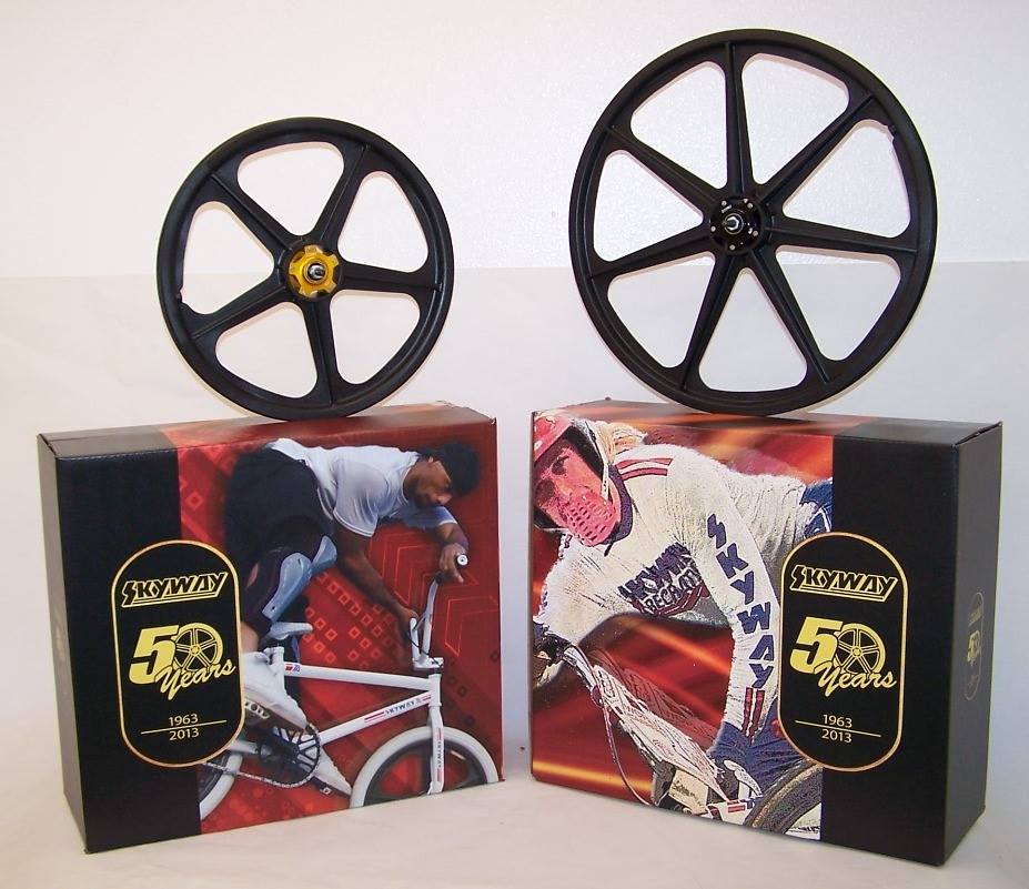 For Legendary BMX Manufacturer Skyway Machines 50th Anniversary, they created a special run of their awesome Graphite flanged wheel sets! They also put together a special 50th Anniversary packaging box which features BMX legend Andy Patterson and…are you ready for this….ME!!! I was blown away when Skyway President/C.E.O. Ken Coster told me he wanted to feature me on the box and now that I actually see it, it’s got me on cloud 9! To be included in such a rich history of BMX that Skyway is a major part of is just mind boggling! All the Legends rode on Skyway Tuff Wheels, Everybody wanted a pair and it’s an honor to carry the torch an introduce a new generation of riders to Skyway’s amazing products!