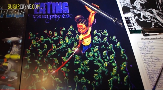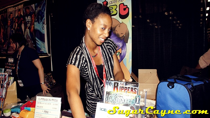 I saw friend to SugarCayne.com Regine Sawyer of Lockett Down Productions at the New York Comic Con holding it down at her booth! Now you know whenever I see Regine I have to get the new update on all the things she’s got going on with her company and comic projects and it’s a lot! She had new promo posters for her vampire series “Eating Vampires”, A mini comic coming in 2014 for Eating Vampires” her Ice Witch preview comic and she even had cookies and more, check out the clip!