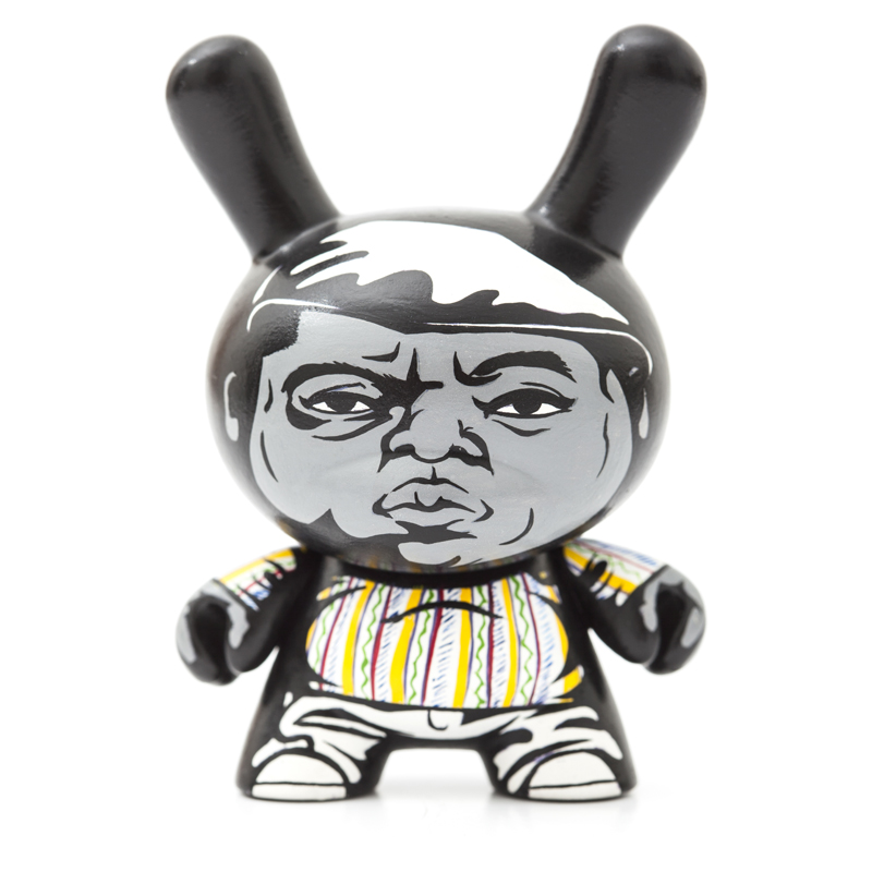 The late Notorious B.I.G. has been immortalized in this really dope Dunny Custom created by UK Toy designer Jon-Paul Kaiser! This piece was very nicely hand-painted by JPK to commemorate the great fallen Brooklyn emcee. The Notorious Dunny has Biggie sporting his trademark kangol hat and Coogi Sweater style that he was famous for.