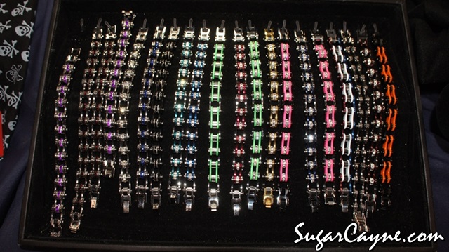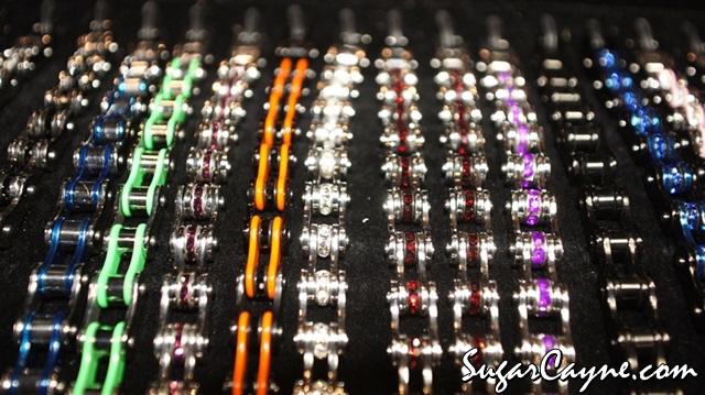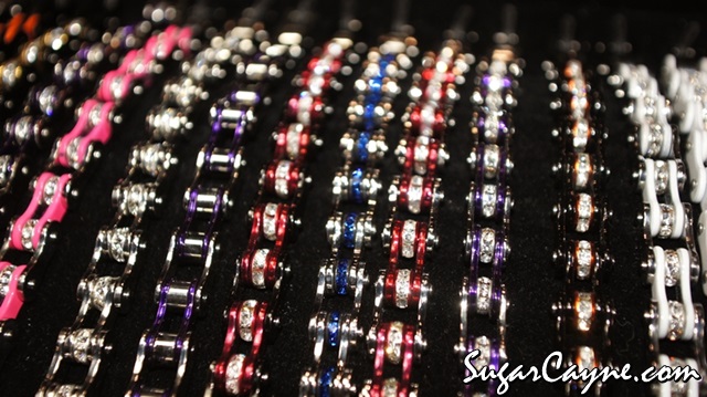 Whenever I got to the Progressive Internationals Motorcycle show I always find indie vendors who make cool cool product. I came across this vending booth for a company called Chained Up Jewelry, they specialize in making chain bracelets. They make the bracelets in an assortment of colors and styles. Chained Up Jewelry also makes chokers, ankle bracelets, belts and earrings. Find out more on the Chained Up Jewelry Facebookpage