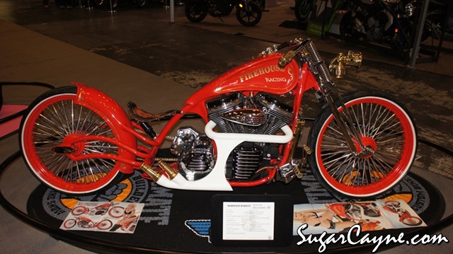 Jon Shipley of Hoosier Daddy Choppers entered this sick custom Harley Davidson Boardtracker that he named the “Firehouse Racer” into the J&P Cycles Ultimate Builder Custom Bike Show at the Progressive International Motorcycle Show and won! You can check out the photos below and tell why he won. This was hands down the best looking bike at the bike show and if you look closely you see all the cool “firehouse” related accents on this beauty. The Firehouse Racer is a customized Harley Davidson Boardtracker and it was beautifully painted by Webb’s Restorations