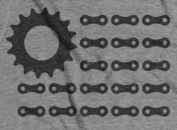 T-Shirt designer Zach Brehm made this really cool T-shirt design to show his love of cycling and design. The design is called “Red, Bike And Blue” and it shows a sprocket with a few lines of chains to look like the American flag, pretty cool! Hopefully these shirts will actually come with the red, white and blue color skeme too, that would be dope!!
