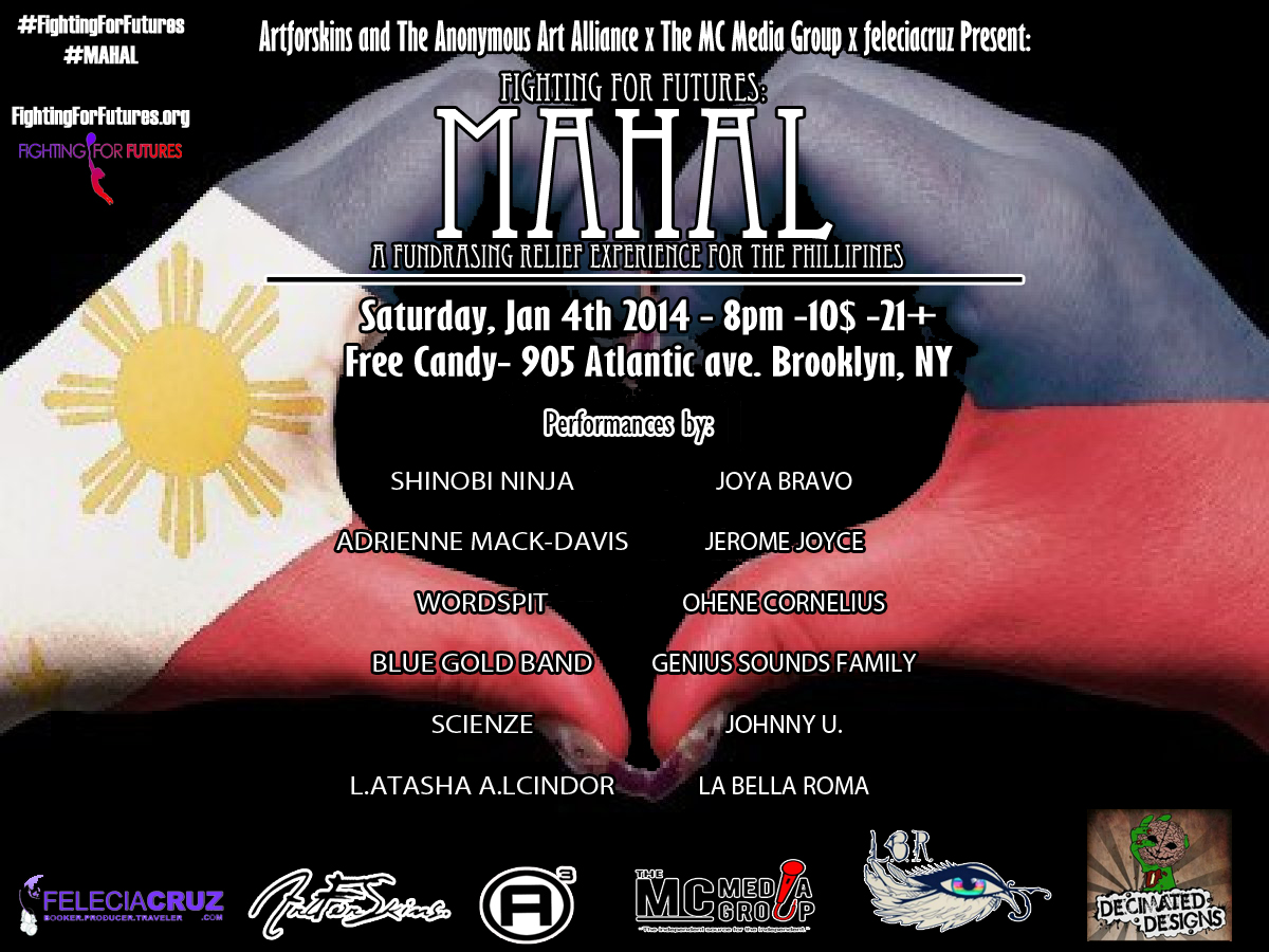 2014 is gonna start of right with a great showcase and fundraiser this Thursday Jan 4th at Free Candy in Brooklyn! The name of the event is “Mahal: Fundraiser For The Philippines” and it’s a collaborative effort within the NYC artistic community to
