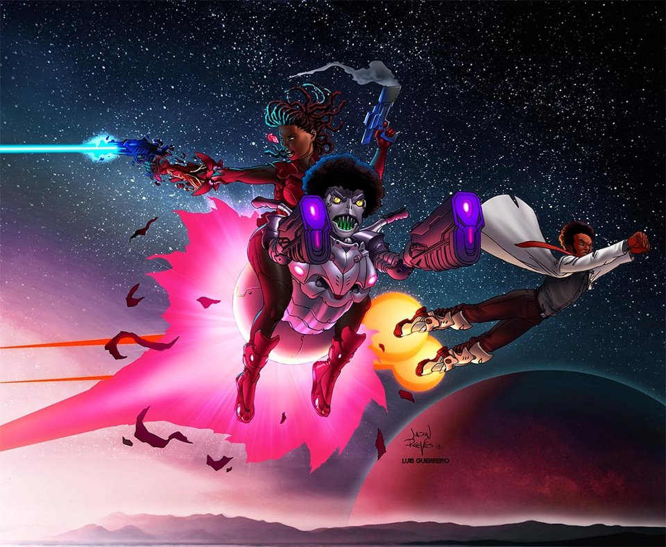 Jason Reeves and Colorist Luis Guerrero of 133Arts finished a really dope illustration commission of Al Hobbie’s Robo Afro characters. I’m loving the way this one came out!