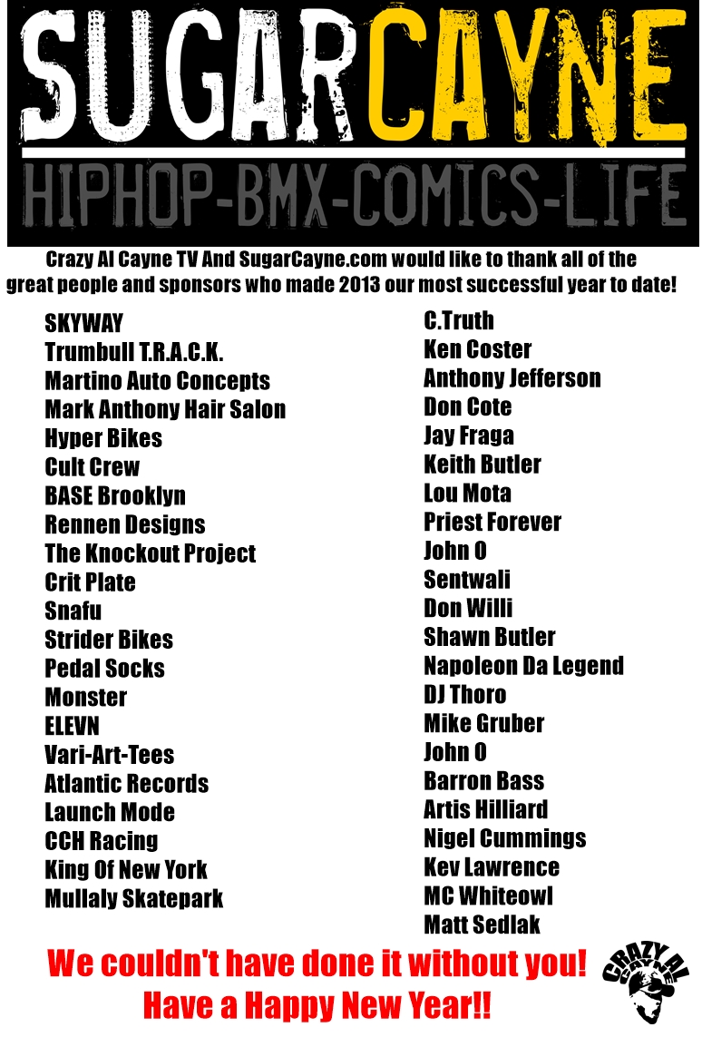 Crazy Al Cayne TV And SugarCayne.com would like to thank all of the great people and amazing sponsors who made 2013 our most successful year to date! Thank you so much for believing in me and my vision. I’m humbled and deeply appreciative for all your help and support! I couldn’t have done it without you,