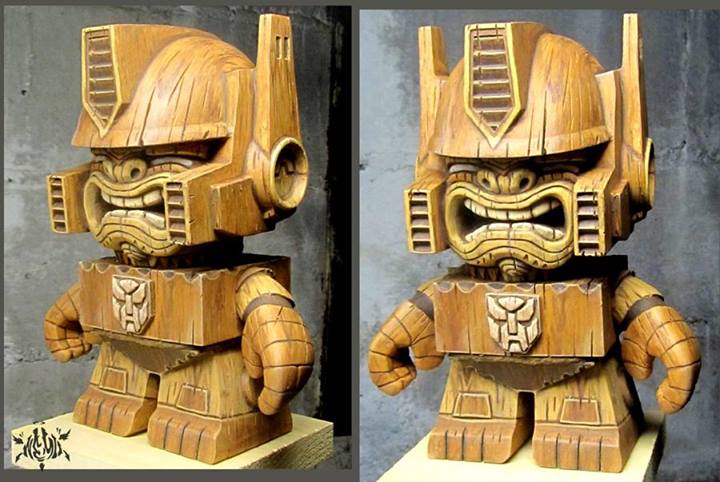 Mike “Nemo” Mendez did it again with a new Tiki Warrior toy! This time he made the great Optimus Prime of the Transformers in to a Tiki Warrior called “TikiPrime”. This awesome wooden toy looks amazing and very detailed, no one is touching Nemo when it comes to his line of Tiki Warrior toys. Hey if you happen to be in Tokyo this weekend for the Transformer Show, you’ll be able to see “TikiPrime in person!!