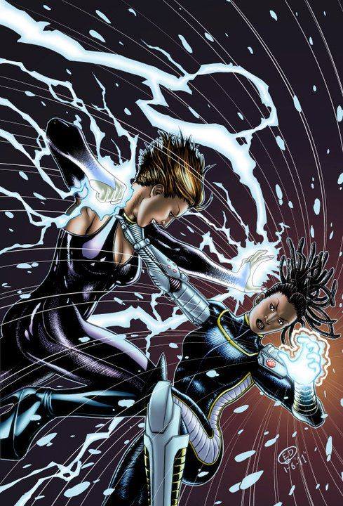An amazing illustrator named Ed Watson made an awesome illustration of the comic characters Chenoa (Ice Witch) & Bevy (Electron) in the midst of heated battle. The two characters in the illustration are the creations of talented writer and friend to SugarCayne.com Regine Sawyer of Lockett Down Productions! I saw this illustration on the Black Comix Creators Facebook event page which has a ton of amazing illustrations on it. Find out more about Ice Witch, Electron and Regine Sawyer on LockettDown.com