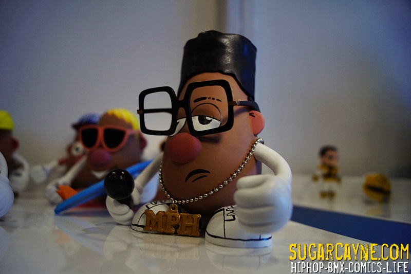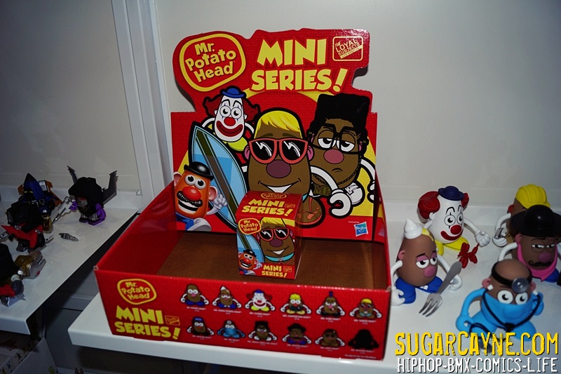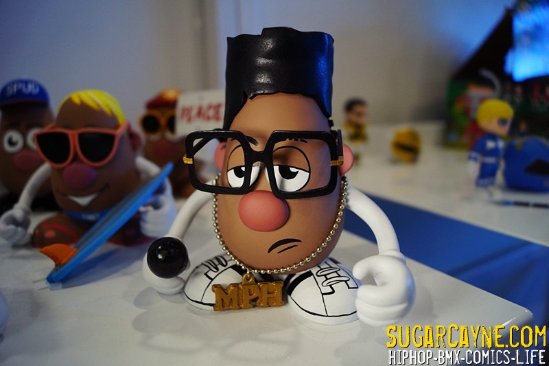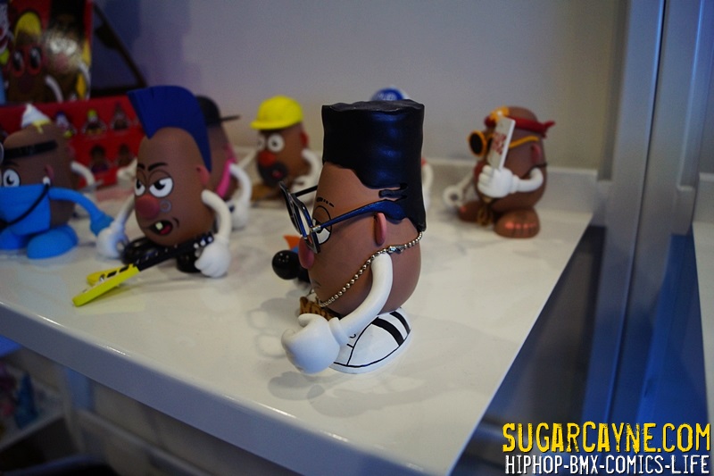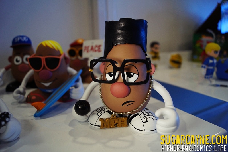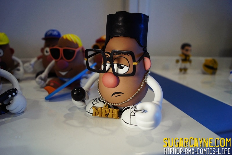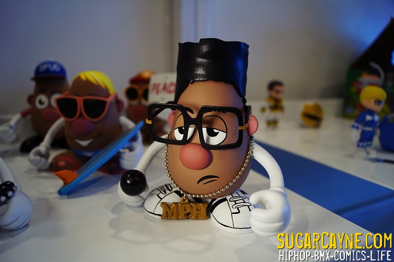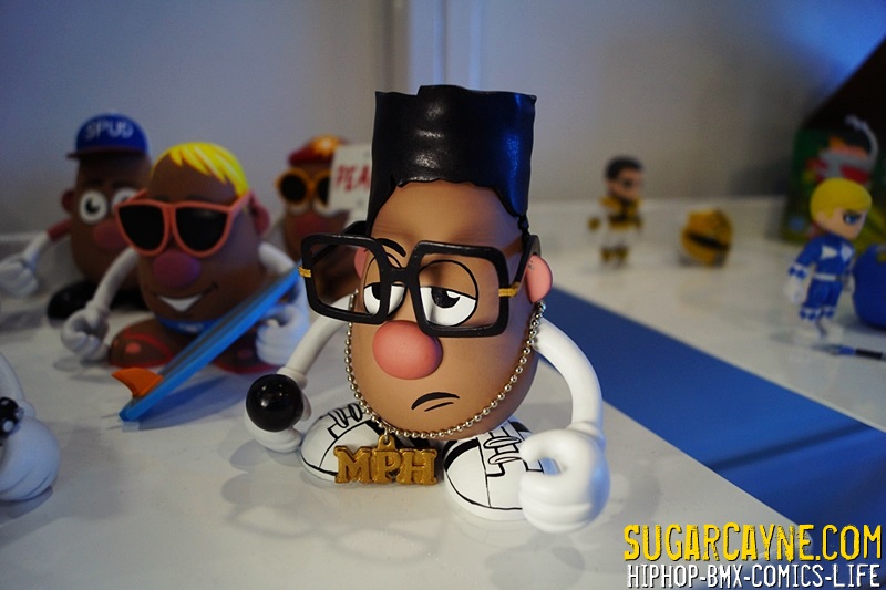 The Loyal Subject were at Toy Fair NY and had a booth setup with some really cool toys. One of my favorite was the MC Potato Head Mini toy which was part of a whole mini series of Mr Potato Heads. MC Potato head is a tribute to the 80’s NY HipHop style with hi high top fade, Rope chain necklace with the gold “MPH”, Adidas style kicks and mic. This is a dope addition to any HipHop toy collector’s collection 4sho! I’m loving it! I’m not sure when this and the other Mr Potato Head minis are coming out but you can visit The Loyal Subjects to find out when.