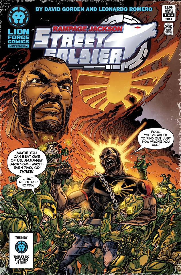 I just saw this dope cover for a comic book called “Rampage Jackson: Street Soldier”. The comic features former UFC light heavyweight champion and Bellator/TNA Wrestling star Quinton “Rampage” Jackson. This cover is for issue #3 and it’s done very nicely by Pat Broderick. The story is by David Gorden and Leonardo Romero and it’s distributed by Lion Forge Comics. Just off the cover alone I want to check this comic out!
