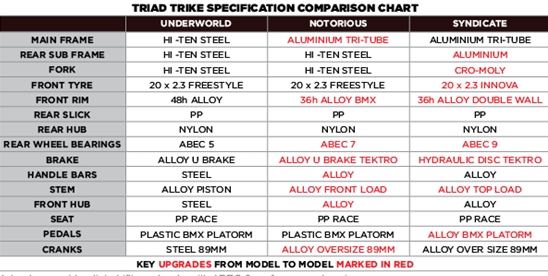 Unfortunately the distributor didn’t want to do an interview so I did a quick little edit showing the features of the trike but I did find a parts comparison chart between Triad’s 3 models..