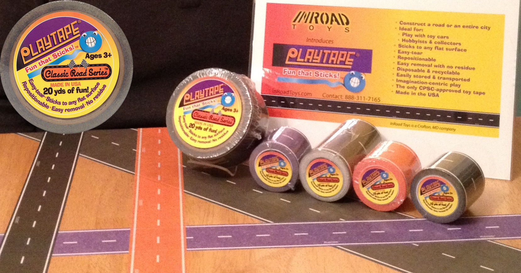 PlayTape is the fastest, best way to creatively build roads for playing with toy cars. PlayTape sticks to any flat surface, is easy-tear, repositionable, easily removed with no residue, easily stored & transported, disposable, and recyclable. Made in the USA. Ages 3+. U.S. Patent Pending.