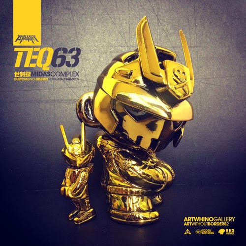 Manila, Philippines based artist Quiccs created this really dope custom 8″ Kidrobot Munny and 3.5″ Original Toy called TEQ63: “MIDAS COMPLEX”! I love that gold plated look of the figures and that B-Boy pose position they’re in. It also looks like they both have on a hoodies that’s wassup! The Midas complex figures were built built exclusively for the “Art Without Borders 2” show at the Art Whino Gallery opening March 22.