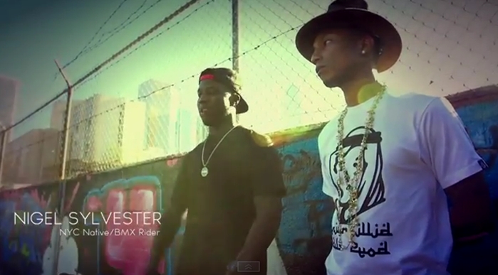 In the latest Pharrell Williams & Nigel Sylvester BMX news, the two talk about BMX culture and how it’s influenced their lives. There’s some cool clips of Nigel getting busy on his bike and Pharrell is still sporting that Malcom McClearen/World Famous Supreme Team/Buffalo Girls hat 😉 . Unfortunately there was no update on their BMX company or the new bike they have in the works, guess we’ll have to wait. This interview was for Red Bull’s new series The Red Bulletin and this episode was guest edited by Pharrell.