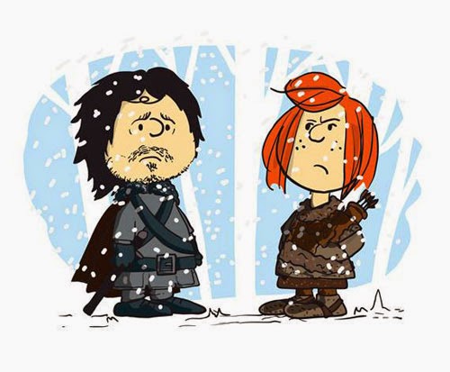 There’s a “Game Of Thrones” themed art exhibit this Sunday April 6th at Bottleneck Gallery! It’s a online group exhibition called “Winter Is Here”. When I saw this Peanuts/ Game of Thrones parody illustration called “I Love You Charlie Snow” I almost fell off my chair lol. I’m a big fan of Game Of Thrones and I grew up on Charlie Brown so this was genius to me!