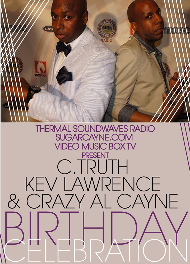Come out and celebrate at this Thermal Soundwaves/Video Music Box/SugarCayne.com event, the Birthdays of C.Truth, Kev Lawrence along with DJ Bazarro